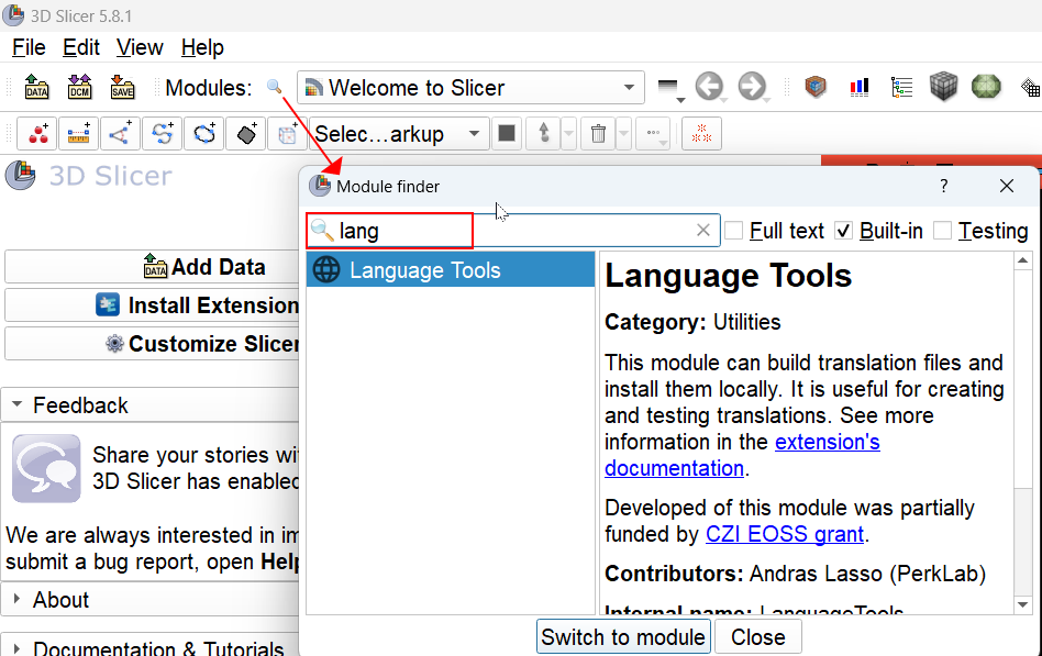 目标:通过加载翻译包,为3D Slicer软件添加中文支持。