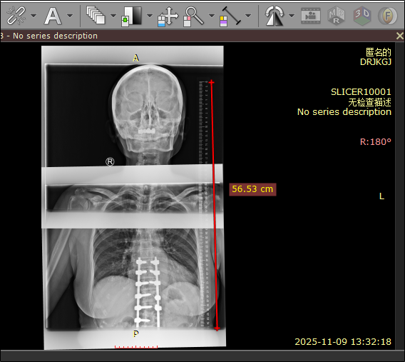 目标影像:1个整体DICOM文件(完整身躯),不丢失比例尺和灰度阈值;