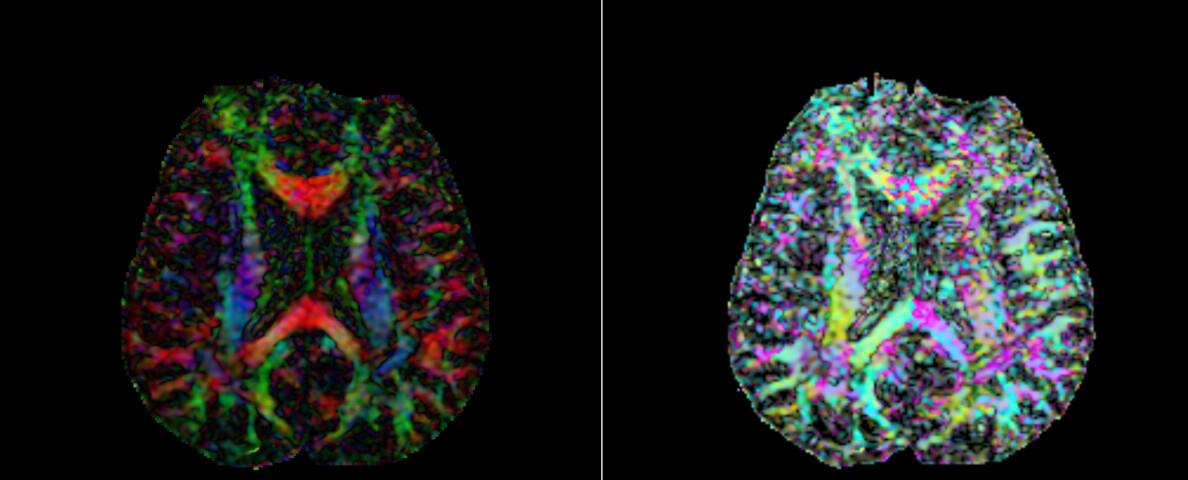 问题描述:自己用程序对对原始数据进行处理在张量拟合后生成dti.nhdr文件,与用3D Slicer对原始数据进行处理后生成的dti.nhdr文件在Slicer软件中打开效果不一样,如下图