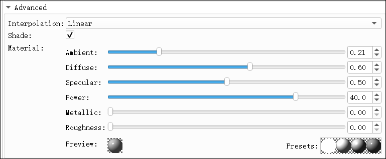 Metallic(金属度):金属反射特性;医学影像常用 0。