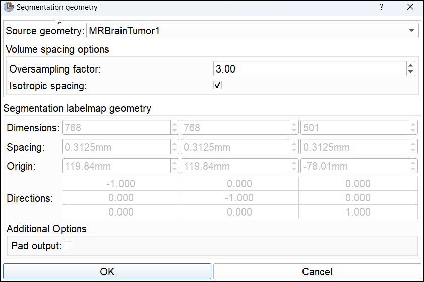 Source geometry选择原始体数据(如 MRBrainTumor1)- 将 Oversampling factor 设置为